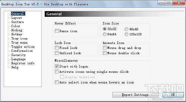 DesktopIconToy是一个桌面增强工具,它会给桌面增添很多乐趣。当鼠标指向桌面图标时,DesktopIconToy可以使图标跳动。它可以很容易的把我们的图标排列到屏幕的左边、右边、上边和下边。我们只要简单的: