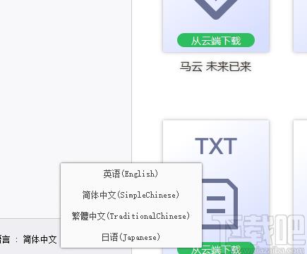 8、点击软件左下角的语言按钮弹出软件语言显示设置列表,点击列表中的语言即可更改软件语言显示